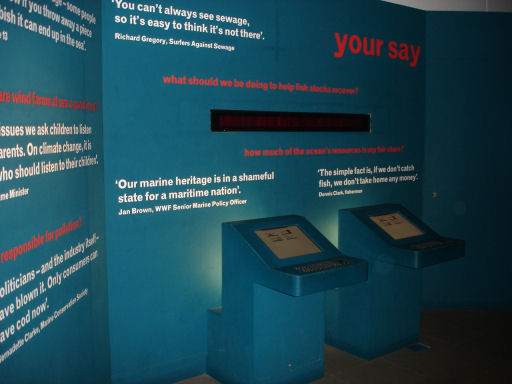 Down the hill from the clocks at Greenwich is the National Maritime Museum. Underneath the ship driving simulator (you must try it) and the “all hands” interactive gallery is a small but effective gallery devoted to sustainability – primarily of the sea.