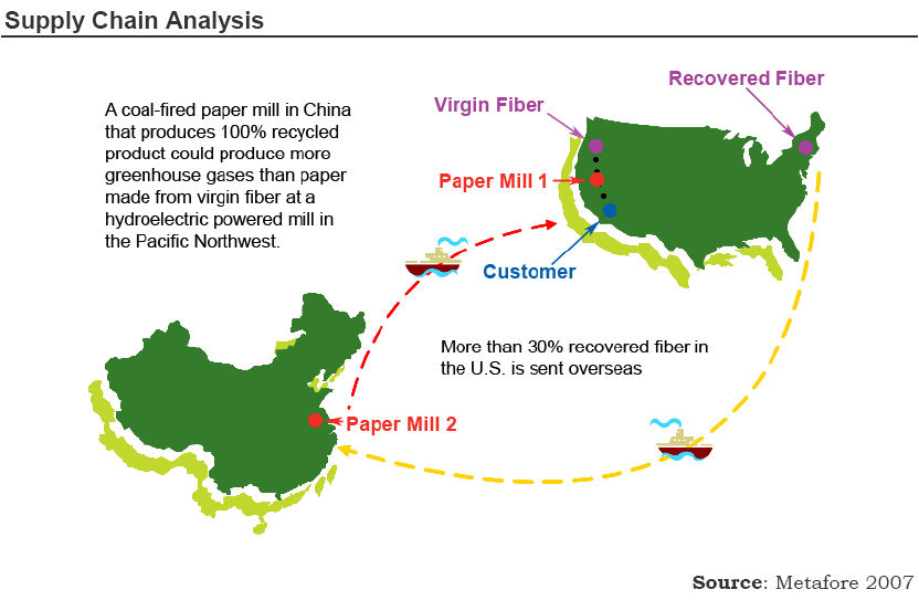 So, is it reasonable to assume that using increasingly higher percentages of recovered fiber in recycled-content paper products results in greater greenhouse gas reductions? Not necessarily. To get a clear picture, you first have to look at how much and what types of energy are used to collect, transport, clean and process post-consumer fiber versus virgin fiber, and then consider what type of energy is used to manufacture the end product.