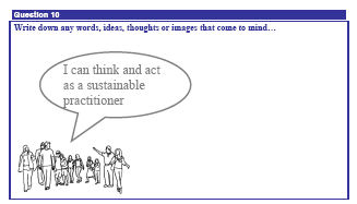 The questionnaire includes two international benchmarks: the revised New Environmental Paradigm Scale (Dunlap et al. 2000); and questions taken from an international study into young people and the environment (Fien et al. 2002); and an adaptation of a Personal Meaning Map (Storksdieck et al. 2005).