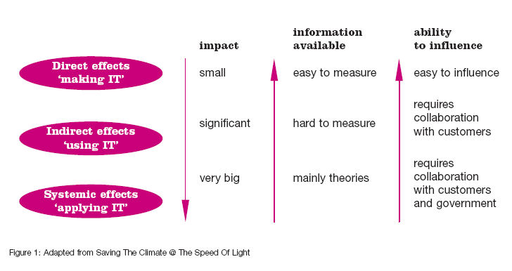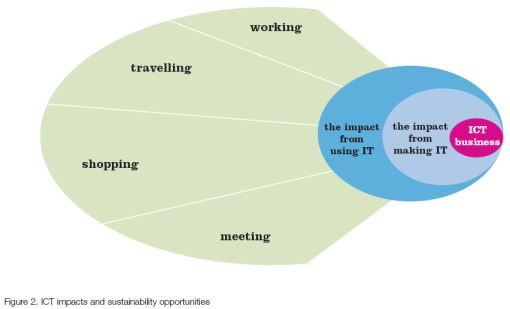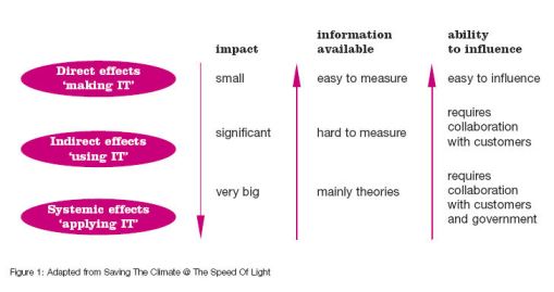b) the authors make the point, better than anything else I’ve read, that computing needs to look beyond its own footprint and consider the impacts of using and applying IT. They argue that 80% of the impacts of computing are in use and application. While they do cover energy issues in use, they go well beyond this and consider much wider impacts and opportunities.
