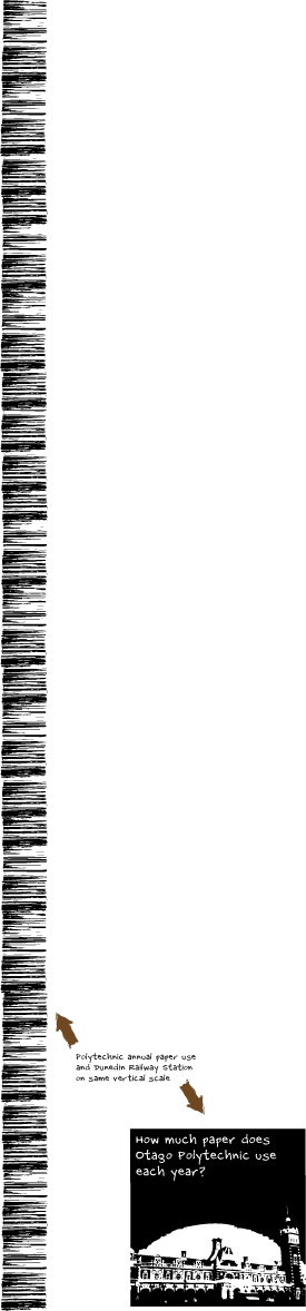 Our annual paper use would make a stack 662 metres tall. That’s more than twice the height of Auckland’s sky tower and only just shorter than our Mt Cargill.
