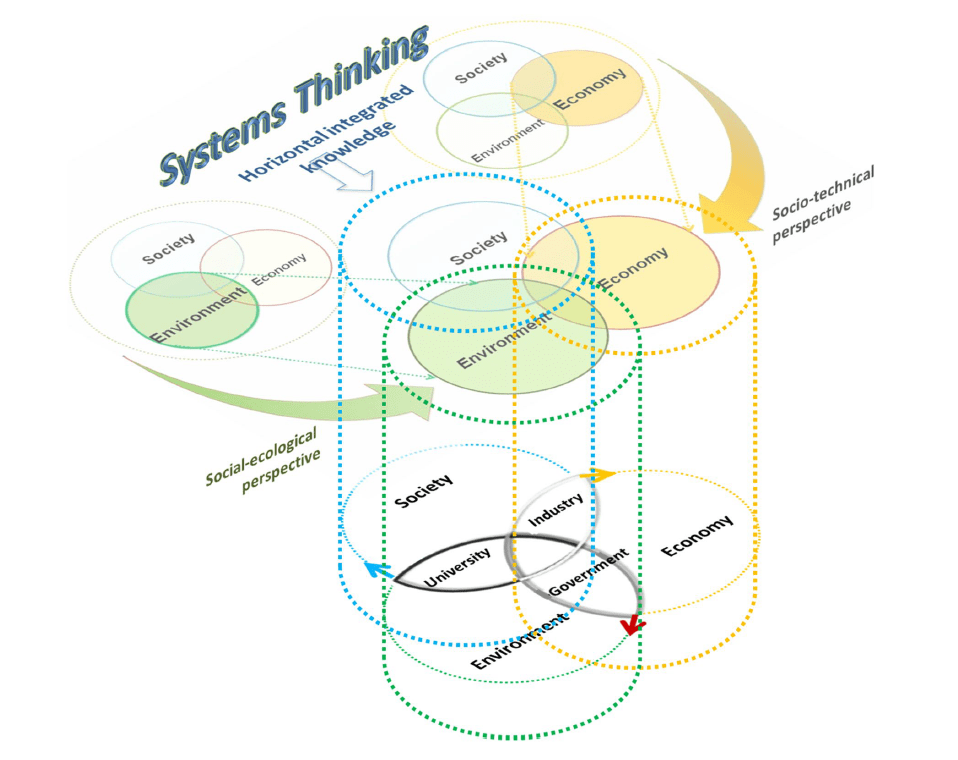 Adding to the collection of diagrams of sustainability. This time we add dimensions – so a triangle becomes a wedge and a pyramid And spirals and links become a pandemic. We finish with an ontological butterfly.