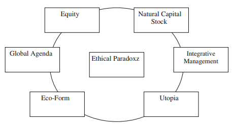 The concept of ethical paradox rests at the heart of this framework. The paradox between ‘sustainability’ and ‘development’ is articulated in terms of ethics. In other words, the epistemological foundation of the theoretical framework of sustainable development is based on the unresolved and fluid paradox of sustainability, which as such can simultaneously inhabit different and contradictory environmental ideologies and practices. Consequently, SD tolerates diverse interpretations and practices that