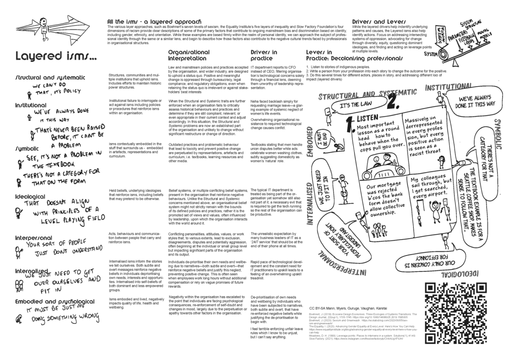 But we extended the logic, developing a more generalised structure for diagnosing and responding to a wide range of “isms”: racism, sexism, colonialism, ableism – each with its own tangled hierarchy of drivers, but with common dynamics we could map.