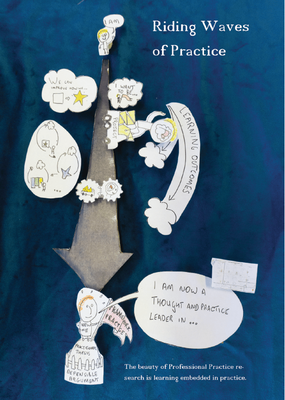 In our latest collaboration – Riding Waves of Practice – Ruth Myers, Dave Guruge, and I wanted to explore what it feels like to do Professional Practice research when the stories are hard to tell, the methods don’t exist yet, and the path forward is more like surfing chaos than following a research plan.